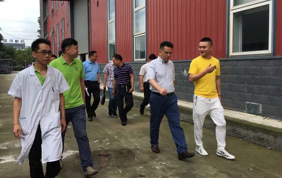 2019年7月18日,中共都江堰市市委副书记张明等领导一行莅临江南平台调研指导,固康药业总经理周金龙以及各部门负责人陪同接待。